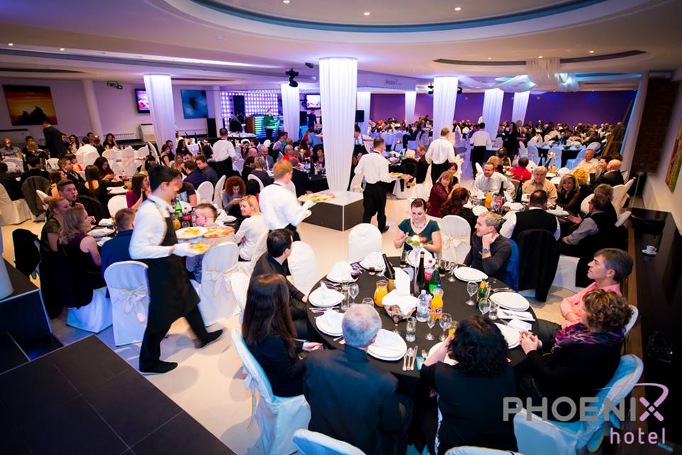 A banquet ceremony organized in this space has a special charm due to a number of details used in the interior design and the setting of round banquet tables for